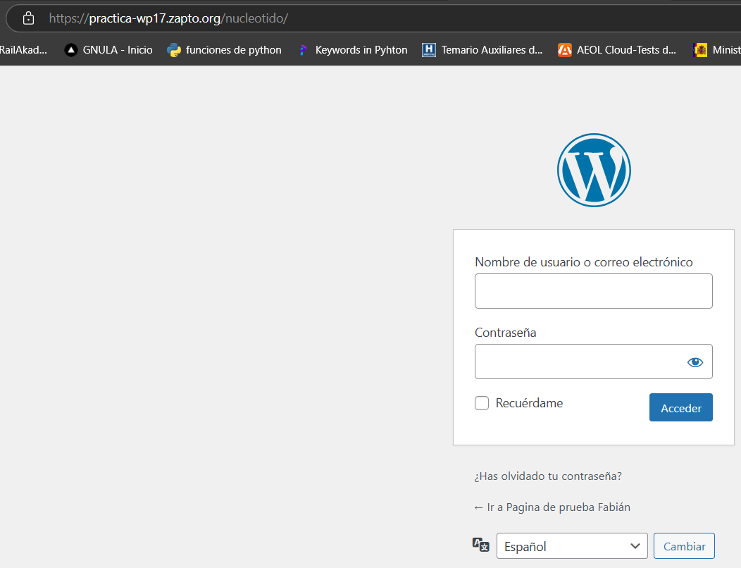 En esta práctica vamos a seguir la misma hoja de ruta que la práctica 1.6 pero con la diferencia del uso de WP-CLI, una aplicación de wordpress, que nos ayuda a implementar nuestro sitio web de forma completamente autónoma dónde solo debemos establecer las variables de entorno para nombre del sitio, idioma o credenciales de administrador y el sitio será desplegado de forma completamente autónoma.