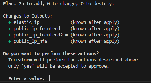 Como vemos nos pide una confirmación, para evitarla podemos poner la opción -auto-approve