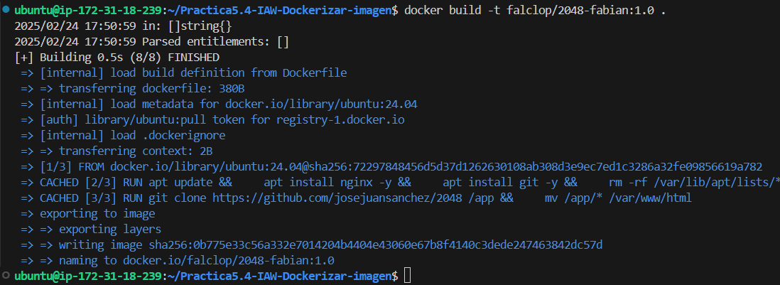Este comando permite poner nombre (tag), versión y localización del dockerfile. Le ponemos nuestro nombre a la imagen para poder subirlo como imagen en DockerHub como no oficial.