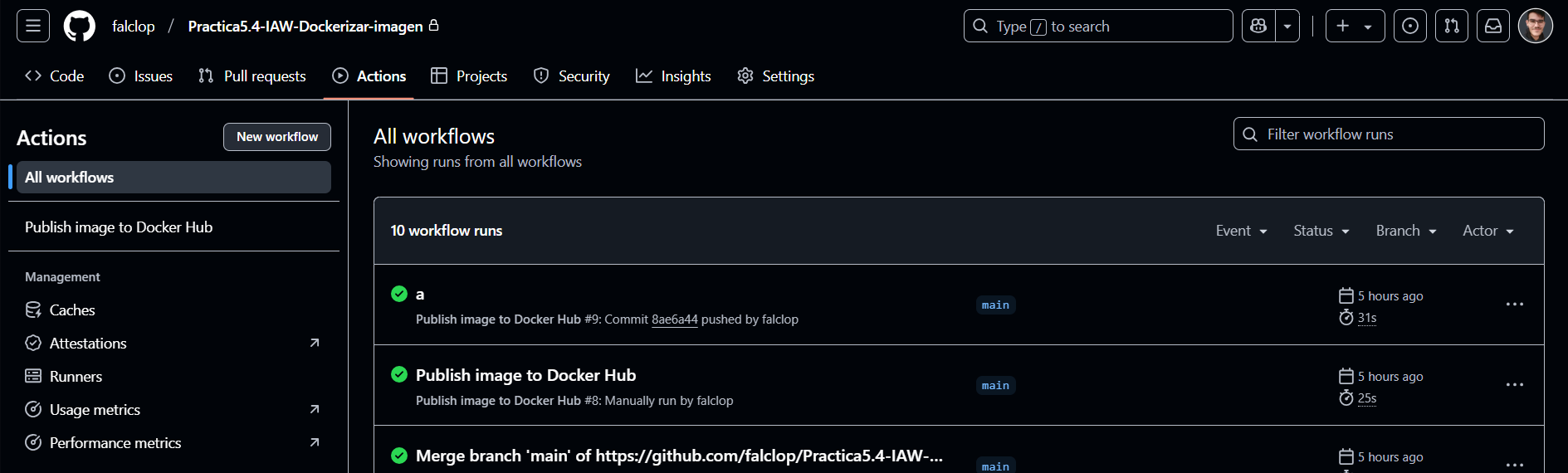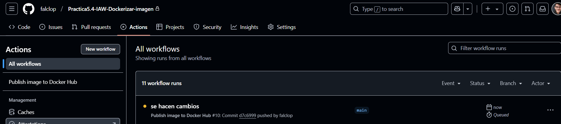 - Finalmente, vamos a crear un disparador en GitHub Actions para poder crear una automatización de CI/CD (Integración y Despliegue continuo). Para ello dentro de nuestro repositorio entramos en Actions y el botón New Workflow.